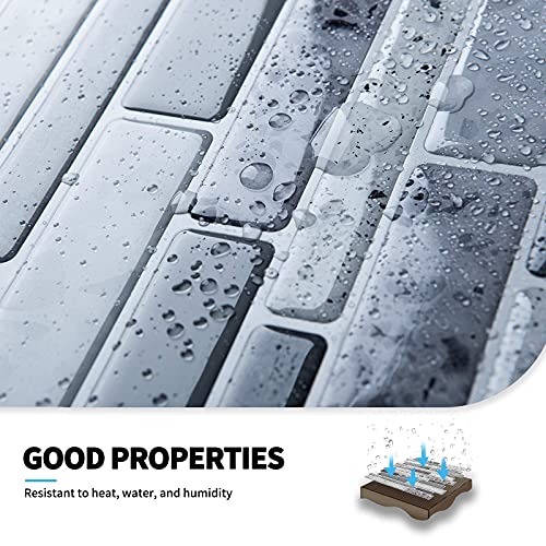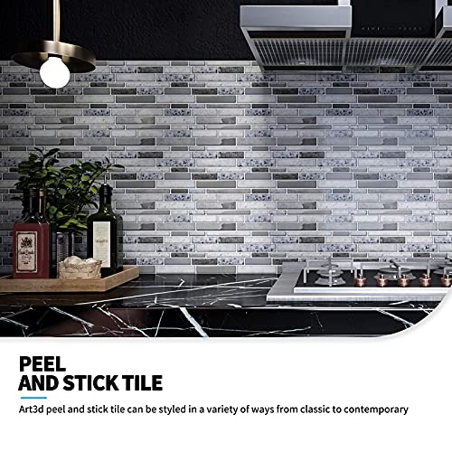 Art3d Peel and Stick Brick Kitchen Backsplash Self-Adhesive Wall Tile Stone Design, 10 Sheets (Grey)