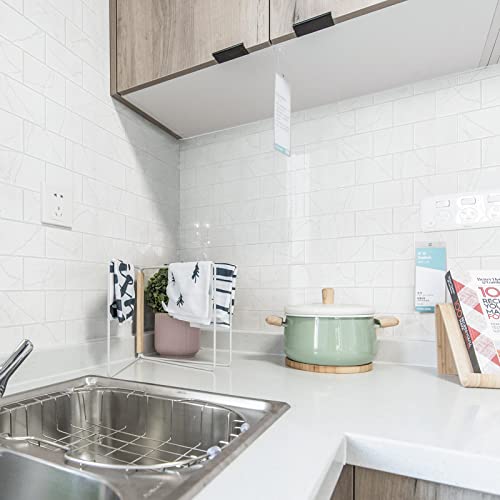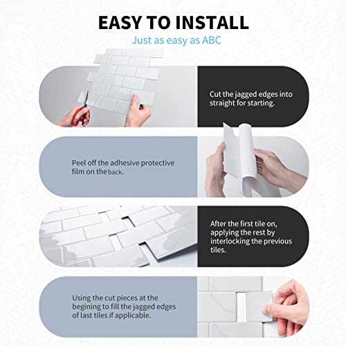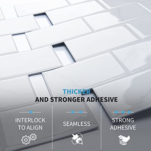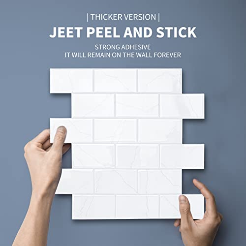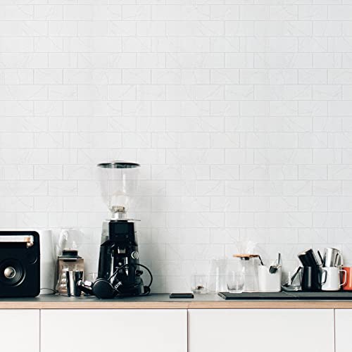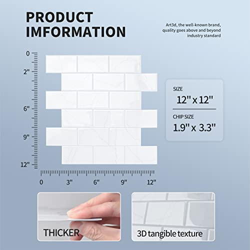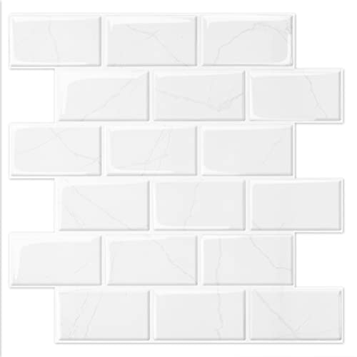 Art3d Subway Tiles Thickened Peel and Stick Backsplash Marble White, Stick on Tiles Kitchen Backsplash 10 Tiles, Thicker Version, 12x12 Inch