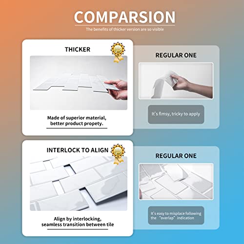 - THICKER VERSION - The Art3d upgrated version tile is 2-3 times thicker than ordinary peel & stick tile, 2mm-2.5mm each, durable and solid tile, unlike soft sticker tiles