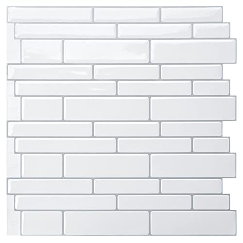 LONGKING Peel and Stick Backsplash Tile Shelf-Adhesive Wall Stickers (10 Sheets) Off White Subway Tile with Grey Grout