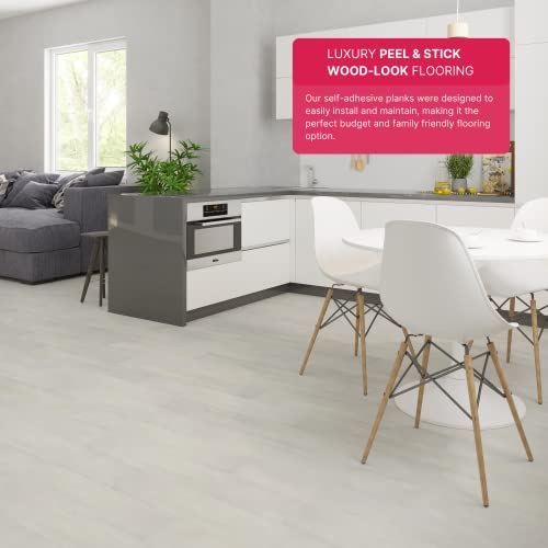LUCiDA SURFACES Luxury Vinyl Flooring Tiles | Peel and Stick Floor Tile for DIY Installation | 12 Wood Look Planks | Cotton | BaseCore | 18 Sq. Feet